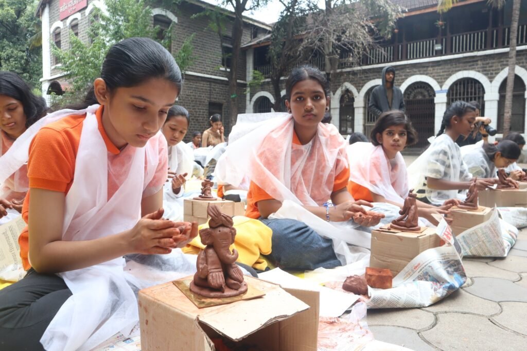 पुणे : मातीच्या गोळ्यापासून आपल्या मनातील लाडक्या गणपती बाप्पाची मूर्ती घडविण्याचा अनुभव घेत जय गणेश पालकत्व योजनेतील विद्यार्थ्यांनी पर्यावरणपूरक गणेशमूर्ती घडविल्या. पर्यावरणाचे रक्षण करू… पर्यावरणपूरक मूर्तीचे पूजन करू… असे सांगत ‘पर्यावरणपूरक गणेशोत्सव’ साजरा करण्याचा संदेशच विद्यार्थ्यांनी दिला.