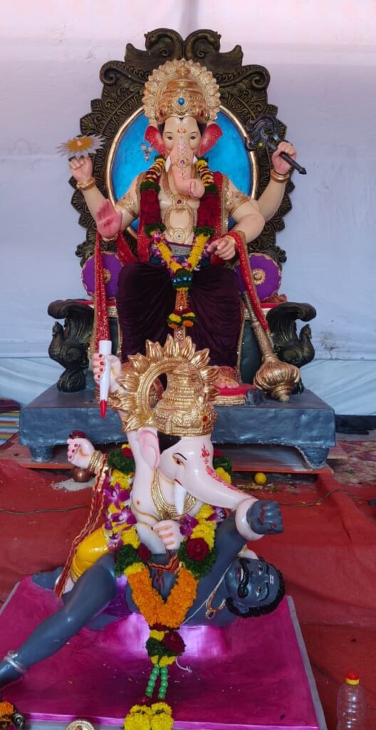 आळंदी ( अर्जुन मेदनकर ) : येथील युवा सामाजिक कार्यकर्ते अमित जयसिंग कुऱ्हाडे पाटील यांनी आपल्या घरातील लक्षवेधी देखाव्यांची परंपरा यावर्षी हि कायम ठेवत या वर्षी गणेशोत्सवात बाबा महाकाल भस्म आरती देखावा सादर करून आळंदीकरांची दाद मिळवली आहे.