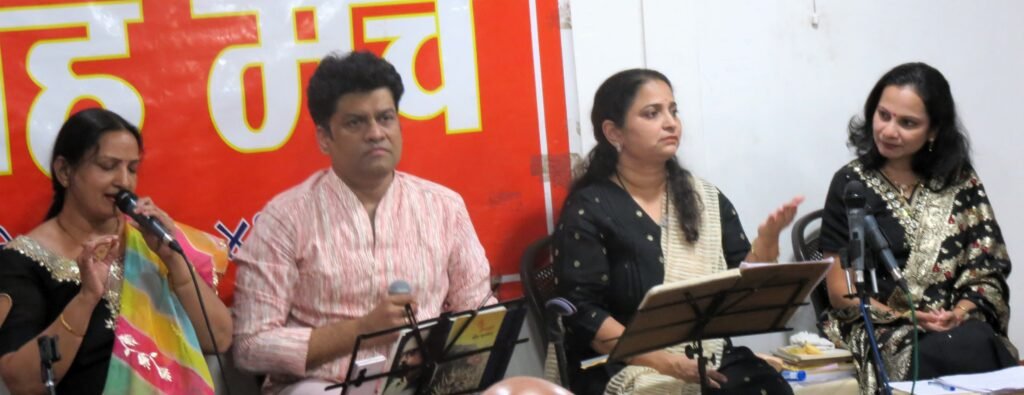 फोटो ओळ : ‘बहुआयामी पाडगावकर’ कार्यक्रमात गीते सादर करताना मनिषा निश्चल, मंदार आपटे, अर्चना गोरे.