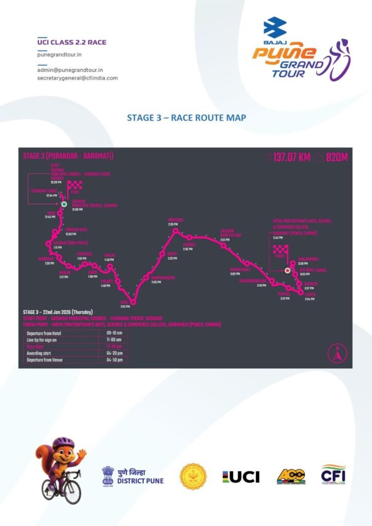 इस चरण की कुल दूरी 137.7 किलोमीटर है और यह सासवड तथा बारामती तालुकों से होकर गुजरेगा। प्रतियोगिता के सफल, सुरक्षित और सुव्यवस्थित आयोजन के लिए प्रशासन की ओर से मार्ग की संपूर्ण स्वच्छता और यातायात व्यवस्था को लेकर सूक्ष्म नियोजन किया गया है। स्थानीय जनप्रतिनिधियों, नागरिकों, गृहनिर्माण सोसायटियों, गणेश मंडलों के पदाधिकारियों, महाविद्यालयों, राष्ट्रीय कैडेट कोर (NCC), राष्ट्रीय सेवा योजना (NSS) के विद्यार्थियों तथा क्रीड़ा संगठनों से प्रशासन के साथ सहयोग करने की अपील की गई है।