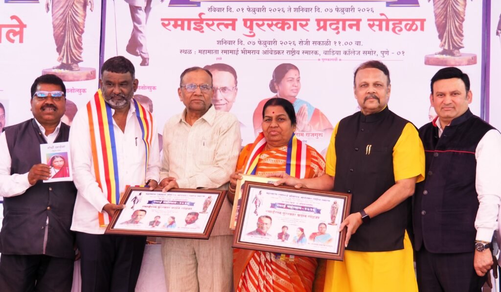 महामाता रमामाई भीमराव आंबेडकर राष्ट्रीय समितीतर्फे आयोजित महामाता रमाई महोत्सवात आज (दि. ७) रमाईरत्न पुरस्कारांचे वितरण करण्यात आले. पुरस्कार वितरण सोहळ्याने महोत्सवाचा समारोप झाला. माजी आमदार दीपक पायगुडे आणि लताताई राजगुरू यांचा रमाईरत्न पुरस्काराने गौरव करण्यात आला. पुरस्काराचे वितरण डॉ. सदानंद मोरे यांच्या हस्ते झाले. त्यावेळी ते अध्यक्ष पदावरून बोलत होते. पंचशील शाल, ग्रंथ असे पुरस्काराचे स्वरूप होते. महोत्सवाचे अध्यक्ष ॲड. प्रमोद आडकर, कार्याध्यक्ष सचिन ईटकर, संयोजक विठ्ठल गायकवाड, बार्टीचे संचालक सुनील वारे, के. एस. सूर्यवंशी, कुणाल राजगुरू, बाबू वागस्कर, मेहबुब नदाफ मंचावर होते.