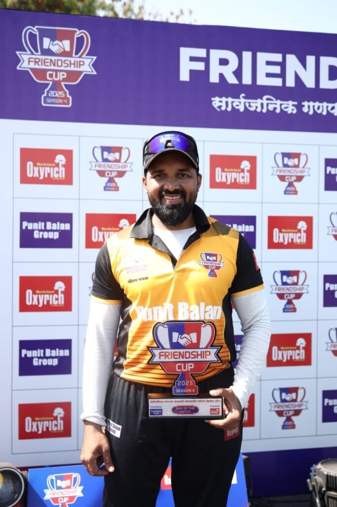 जर्नादन जायंट्सः ८ षटकात ५ गडी बाद ७४ धावा (भुषण इंगळे ३१, शुभम इंगळे २०, ओंकार जोशी २-८, मयुर लकडे २-२०) पराभूत वि. मंडई मास्टर्सः ६.१ षटकात बिनबाद ७५ धावा (अर्थव नाबाद ५० (२०, ३ चौकार, ४ षटकार), सुरज थोरात नाबाद २३); सामनावीरः अर्थव;