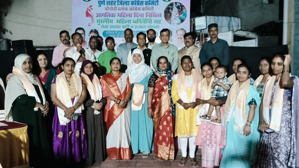 पुणे. विश्व महिला दिवस और रमज़ान के पवित्र महीने के पवित्र के अवसर पर पुणे शहर जिला कांग्रेस कमेटी के बोपोडी ब्लॉक कांग्रेस कमेटी द्वारा एक महिला विशेष रोजा इफ्तार और महिला विशेष सम्मान समारोह का आयोजन किया गया था। यह आयोजन पहली बार सिर्फ महिलाओं के लिए रोजा इफ्तार का आयोजन किया गया था. इस पहल का आयोजन महिलाओं के सामाजिक, धार्मिक और सांस्कृतिक योगदान को सम्मानित करने के उद्देश्य से किया गया था । महिलाओं को सामाजिक रूप से भाग लेने और एकजुट होने का अवसर देने के लिए कांग्रेस द्वारा यह अनूठी पहल लागू की गई थी।कार्यक्रम का आयोजन बहुत ही उत्साहपूर्ण और भावनात्मक माहौल में डॉ. राजेंद्र प्रसाद विद्यालय, बोपोडी में आयोजित किया गया। रमज़ान के महीने में महिलाओं के लिए विशेष इफ्तार का आयोजन कर उन्हें धार्मिक और सामाजिक सद्भाव का अनुभव कराने का यह पहला प्रयास था।