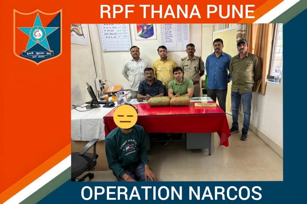 निरीक्षक आरपीएफ़ थाना पुणे के निर्देशानुसार पुणे रेलवे स्टेशन पर अपराध रोकथाम हेतु शनिवार शाम करीब 7:20 बजे आरपीएफ टीम को गस्त लगने के दौरान पुणे रेलवे स्टेशन के प्लेटफार्म नंबर 01 पर एक युवक संदिग्ध हालात में दिखा। जब उसे रोका गया और पूछताछ की गई, तो उसने अपना नाम साहिल मालायक्यास नायक (उम्र 21 वर्ष, निवासी गजपति, ओडिशा) बताया। वह पूछताछ के दौरान घबराने लगा, जिससे संदेह बढ़ गया। जब अधिकारियों ने उसके काले रंग के बैग की जांच की, तो उसमें से गांजा जैसी गंध आ रही थी। गहन पूछताछ के बाद उसने स्वीकार किया कि वह यह गांजा ब्रह्मपुर (ओडिशा) से दिल्ली ले जा रहा था। सूचना मिलते ही आरपीएफ निरीक्षक व सहायक सुरक्षा आयुक्त मौके पर पहुंचे और दो स्वतंत्र गवाहों की उपस्थिति में आरोपी के बैग की तलाशी ली। बैग से 02 प्लास्टिक टेप से सीलबंद पैकेट मिले, जिनका कुल वजन 4.6 किलोग्राम निकला। इसके बाद गांजा जब्त कर आरोपी को मेडिकल परीक्षण के बाद GRP/पुणे को सौंप दिया गया। इसके बाद इस पार्सल कार्यालय में इलेक्ट्रिक वजन काँटा पर वजन किया गया। जिसमें दोनों पैकेट का कुल वजन 4.6 Kg पाया गया । जिसकी अनुमानित कीमत रुपए 92000/- आंकी गयी । बाद उक्त दोनों पैकेट को जप्ती पंचनामा के तहत जब्त किया गया।