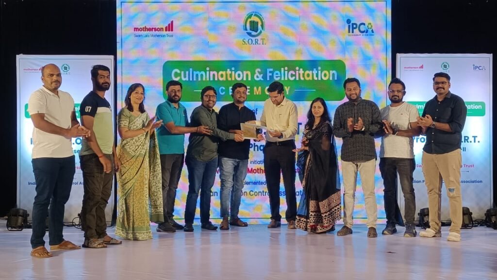पुणे. IPCA के द्वारा स्वर्ण लता मदरसन ट्रस्ट के CSR पहल के अंतर्गत संचालित Project S.O.R.T. (Segregation of Waste for Recycling and Treatment) के Phase II का समापन एवं सम्मान समारोह सफलता पूर्वक संपन्न हुआ। यह परियोजना सोसायटी स्तर पर घरों से निकलने वाले कचरे को अलग करने और उसके उचित प्रबंधन को बढ़ावा देने के लिए चलाई जा रही है। इस पहल के अंतर्गत गीले कचरे से खाद बनाया जाता है, जिससे डंप यार्ड पर कचरे का भार कम किया जा सके। इस परियोजना का क्रियान्वयन इंडियन पॉल्यूशन कंट्रोल एसोसिएशन (IPCA) द्वारा किया जाता है, जो एक गैर-लाभकारी संगठन है और पूरे भारत में ठोस अपशिष्ट प्रबंधन के क्षेत्र में कार्यरत है।