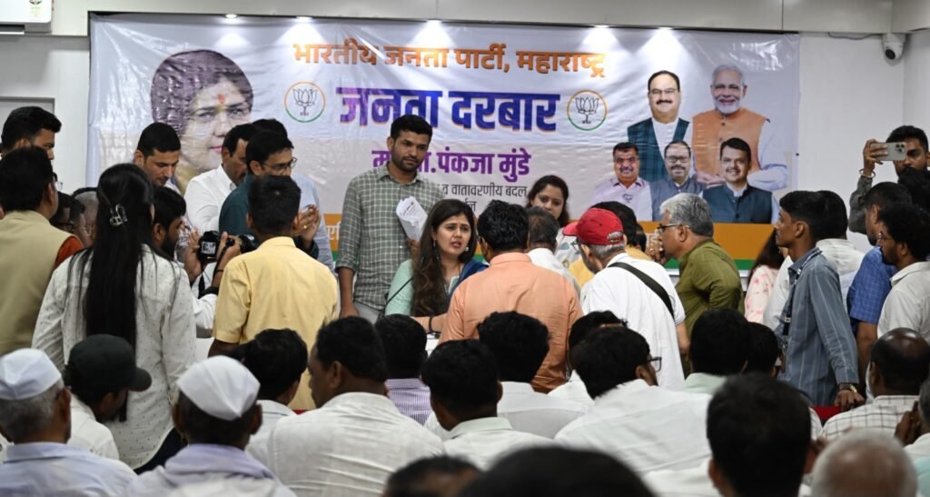 पर्यावरण व वातावरणीय बदल तसेच पशुसंवर्धन मंत्री पंकजा मुंडे यांचा जनता दरबार मंगळवारी दुपारी 3 वाजता भाजपा प्रदेश कार्यालयात संपन्न झाला. या जनता दरबारात मंत्री पंकजा मुंडे यांच्यासमोर सर्वसामान्य नागरिकांनी त्यांच्या तक्रारी, समस्या आणि सूचना मांडल्या. मोठ्या संख्येने उपस्थित नागरिकांशी पंकजा मुंडे यांनी संवाद साधत त्यांच्या समस्या जाणून घेतल्या.