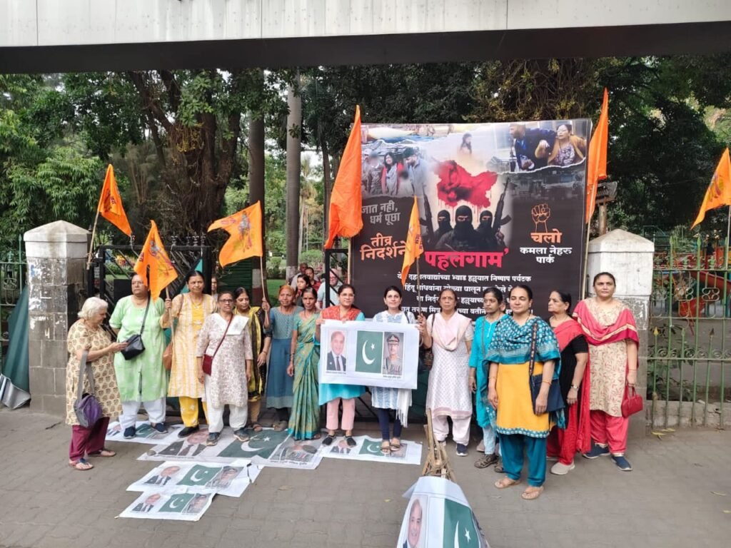 काश्मीर, पहलगाम येथिल हिंदु पर्यटकांवरील इस्लामी दहशतवादी हल्ल्याचा तीव्र निषेध करण्यासाठी पाक पंतप्रधान शहाबाज शरीफ आणि पाक लष्कर प्रमुख असिम मुनीर व पाकिस्तानच्या झेंड्याचे दहन करुन त्यांच्या विरोधात जोरदार घोषणा देत निदर्शने करण्यात आले.