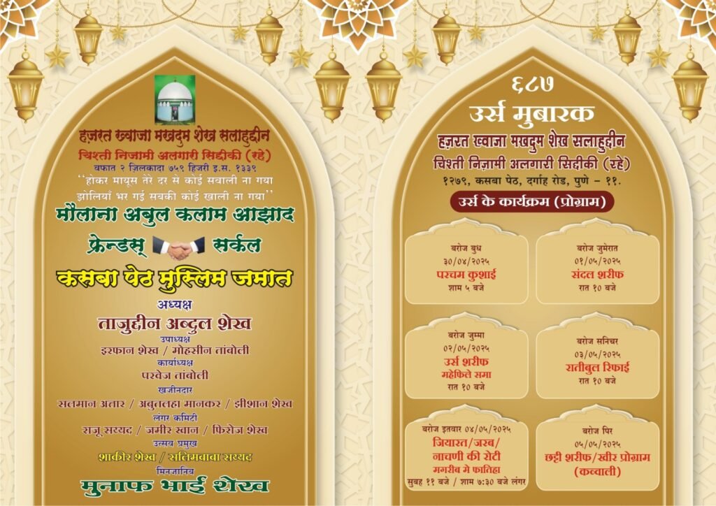 यंदाच्या वर्षी परचम कुशाई , संदल शरीफ , महेफिले समा, रातीबुल रिफाई , जरब टोचणे , छट्टी शरीफ व खीर प्रोग्रॅम तसेच बहारदार कव्वालीचे आयोजन करण्यात आलेले आहे. हा संपूर्ण कार्यक्रम मौलाना अबुल कलाम आझाद फ्रेंड सर्कल व कसबा पेठ मुस्लिम जमात यांच्या संयुक्त विद्यमाने साजरा केला जातो. या उत्सवात जास्तीत जास्त नागरिकांनी आनंदाने सहभागी व्हावे असे आवाहन हजरत ख्वाजा मखदूम शेख सलाउद्दीन चिस्ती निजामी अलगारी सिद्दिकी ( रहे ) ट्रस्टच्या वतीने तसेच उत्सव समितीचे ताजुद्दीन शेख , शाकिर शेख , मुनाफ शेख यांच्या वतीने करण्यात येत आहे.