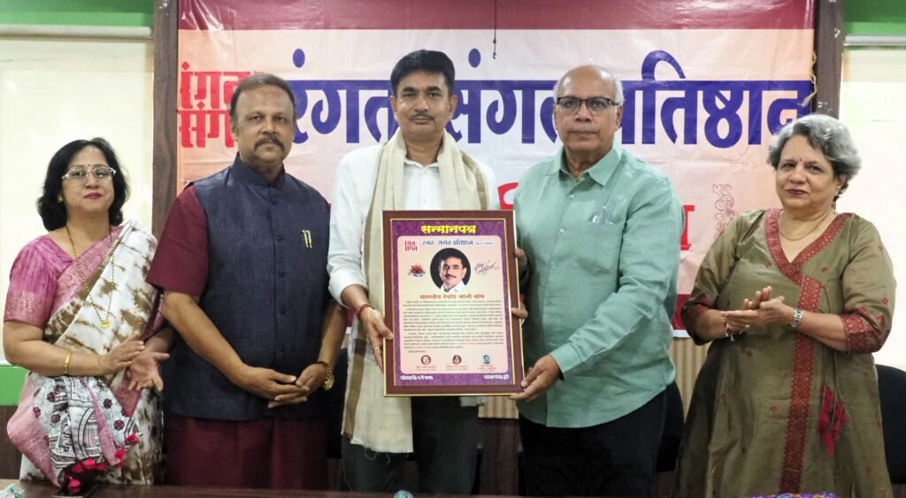 पाणीविषयक मोलाचे कार्य करणारे नाशिक येथील गोदाप्रेमी समितीचे अध्यक्ष, जलदूत देवांग जानी यांचा रंगत-संगत प्रतिष्ठानच्या काव्य विभागातर्फे आज (दि. 5) पुरस्कार देऊन गौरव करण्यात आला. पुरस्काराचे वितरण लक्ष्मीकांत देशमुख यांच्या हस्ते झाले. त्या वेळी ते बोलत होते. रंगत-संगत प्रतिष्ठानचे अध्यक्ष ॲड. प्रमोद आडकर, काव्य विभागाच्या संचालिका प्रज्ञा महाजन मंचावर होते. शाल, सन्मानपत्र असे पुरस्काराचे स्वरूप होते. पत्रकार भवन येथे कार्यक्रम झाला.