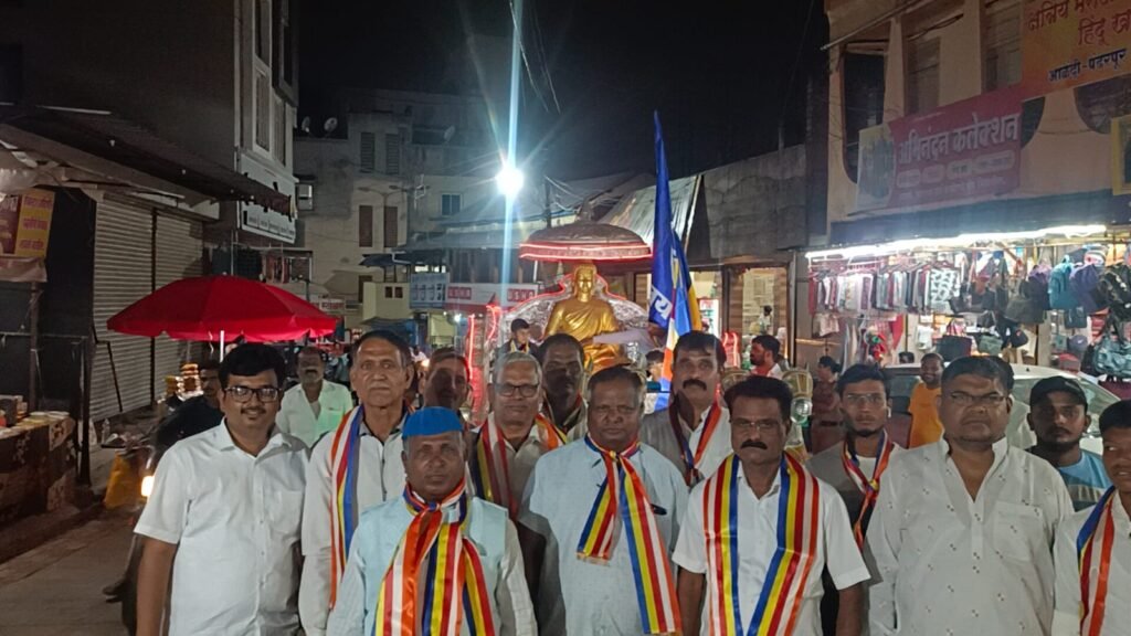 आळंदी ( अर्जुन मेदनकर ) : सामुहिक बुद्धवंदना, खीरदान, बुद्धमुर्तीची मिरवणूक अशा विविध कार्यक्रमांनी आळंदीत सोमवारी ( दि.१२ ) बुद्धपौर्णिमा मोठ्या उत्साहात साजरी करण्यात आली.