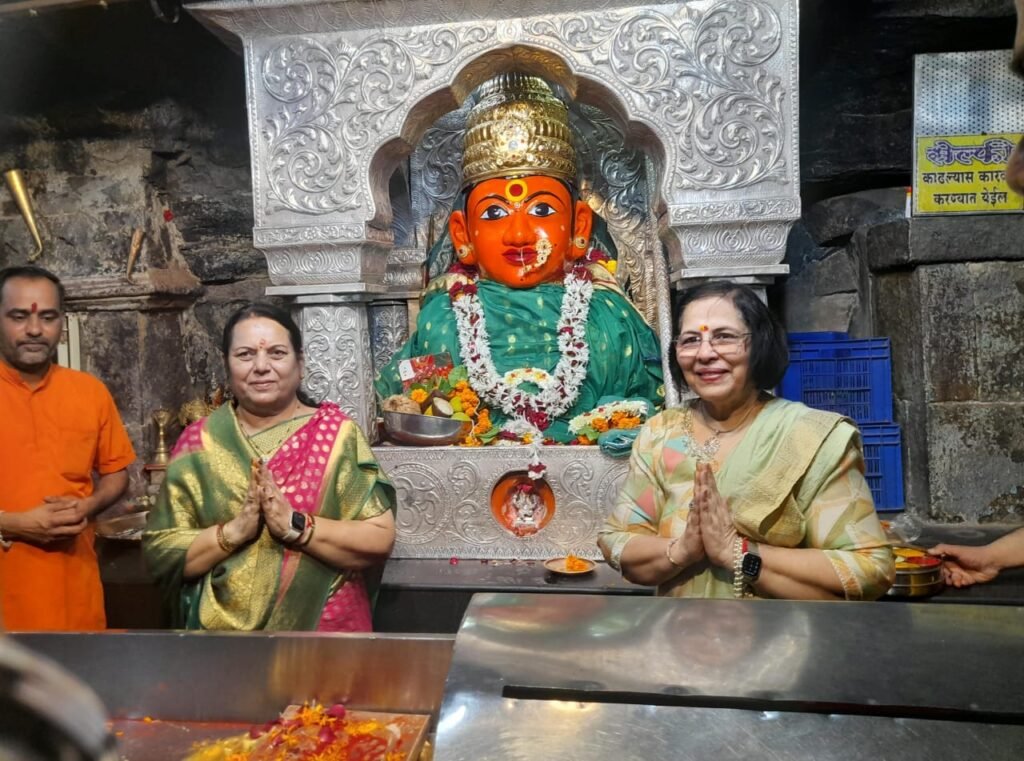 नाशिक. विधान परिषद उपसभापती डॉ. नीलम गोऱ्हे यांनी नाशिक जिल्ह्यातील प्रसिद्ध धार्मिक स्थळ श्री क्षेत्र रेणुका देवी संस्थान, चांदवड येथे जाऊन देवीचे दर्शन घेतले. या भक्तिपूर्ण प्रसंगी त्यांच्या सोबत त्यांची भगिनी जेहलम जोशी देखील उपस्थित होत्या.