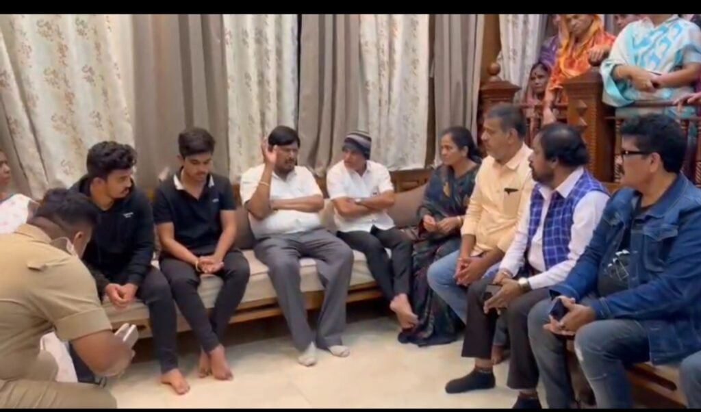 पुणे .रिपब्लिकन पक्षाचे राष्ट्रीय अध्यक्ष केंद्रीय सामाजिक न्याय राज्यमंत्री ना.रामदास आठवले यांनी आज दिवंगत वैष्णवी यांच्या कुटुंबीयांची कस्पटे वस्ती येथे सांत्वनपर भेट घेतली. वैष्णवी यांची आत्महत्या ही आत्महत्या बसून तिच्या सासरच्या लोकांनी केलेली हत्या आहे.त्यामुळे वैष्णवी ला न्याय देण्यासाठी आरोपींवर खुनाचा गुन्हा दाखल करावा अशी मागणी ना.रामदास आठवले यांनी केली.यावेळी रिपब्लिकन पक्षाच्या महिला आघाडी च्या महाराष्ट्र प्रदेश अध्यक्ष चंद्रकांता सोनकांबळे, परशुराम वाडेकर, बाळू भागवत, कुणाल व्हावलकर, शैलेश चव्हाण, अजीज शेख , प्रवीण ओव्हाळ उमेश कांबळे, आदी उपस्थित होते. डीसीपी विशाल गायकवाड उपस्थित होते.