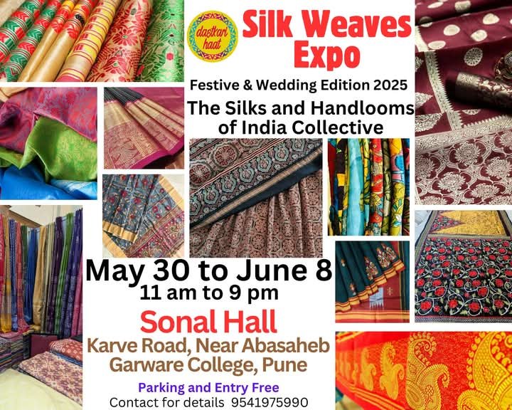 पुणे .देशभर के २० राज्यों के कुशल कारीगरों द्वारा बनाए गए हस्तनिर्मित कपड़े, साड़ियाँ, शॉल और गलीचे आदि का प्रदर्शन करने वाली ‘दस्तकारी हाट सिल्क वीव्स एक्सपो’ ३० मई से ०८ जून २०२५ तक सोनल हॉल (एरंडवणे, कर्वे रोड) में आयोजित किया जाएगा। यह प्रदर्शनी प्रतिदिन सुबह ११ बजे से रात ९ बजे तक खुली रहेगी। इस विशेष प्रदर्शनी में बनारसी सिल्क, लिनन, कॉटन और पारंपरिक उत्सव परिधानों के बेहतरीन प्रकार प्रदर्शित किए जाएंगे। साड़ियाँ, ड्रेस मटेरियल, सूट, कुर्ते, शॉल और विभिन्न प्रकार के हस्तनिर्मित वस्त्र इस कार्यक्रम में प्रदर्शित और उपलब्ध होंगे। विभिन्न राज्यों की पारंपरिक एवं आधुनिक तकनीकों का संगम इस प्रदर्शनी में एक ही छत के नीचे देखने को मिलेगा। भारत के अलग-अलग हिस्सों से लाए गए रेशमी और सूती वस्त्रों के ७० से अधिक स्टॉल्स इस प्रदर्शनी में होंगे।