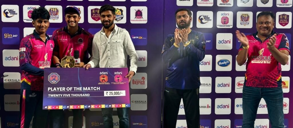 पुणे, १७ जून २०२५: महाराष्ट्र क्रिकेट संघटनेच्या वतीने आयोजित अदानी महाराष्ट्र प्रीमियर लीग(एमपीएल) २०२५ स्पर्धेत साखळी फेरीत सिद्धेश वीरच्या नाबाद ३३ धावांसह तनय संघवी(३-२५) याने केलेल्या सुरेख गोलंदाजीच्या जोरावर रायगड रॉयल्स संघाने सातारा वॉरियर्स संघाचा २ धावांनी पराभव करत आपली आगेकूच कायम राखली.