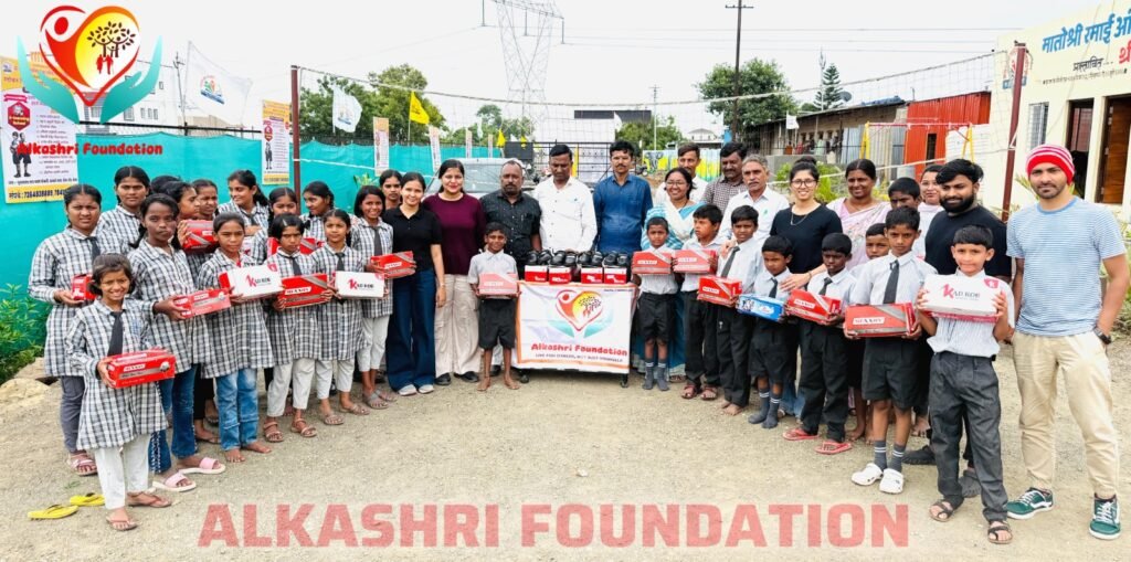 मातोश्री रमाई आंबेडकर प्राथमिक व माध्यमिक निवासी आश्रमशाळेच्या मुख्याध्यापिका शबाना शेख यांनी सांगितले की, शाळा विना अनुदानित असून अलकाश्री फाउंडेशनचे वतीने विद्यार्थ्यांना मुला – मुलीसाठी स्कूल शुजचे व लेगीनचे वाटप करण्यात आले. त्याबद्दल विद्यार्थ्यांना नवसंजीवनी मिळाल्याचे सांगितले, या प्रसंगी आश्रम शाळा मुख्याध्यापिका शबाना शेख, अमोल शिंदे, हनुमंत केदार, प्रवीण कांबळे, वासुदेव बारी, माधुरी सुपेकर, मीना खंडागळे आदी शिक्षक वृंद तसेच अलकाश्री फाउंडेशनचे पुजा हाणफोडे, लहु गाडेकर, आशुतोष वाकोदकर, माही शिंदे, पायल म्हस्के, कादर शेख, आळंदी जनहित फाउंडेशनचे कार्याध्यक्ष अर्जुन मेदनकर, सुहास सावंत, विद्यार्थी विद्यार्थिनी मोठ्या संख्येने उपस्थित होते. सूत्रसंचालन अमोल शिंदे यांनी केले. प्रास्ताविक सुनिल तुपे यांनी केले. आभार अमोल भोसले यांनी मानले.