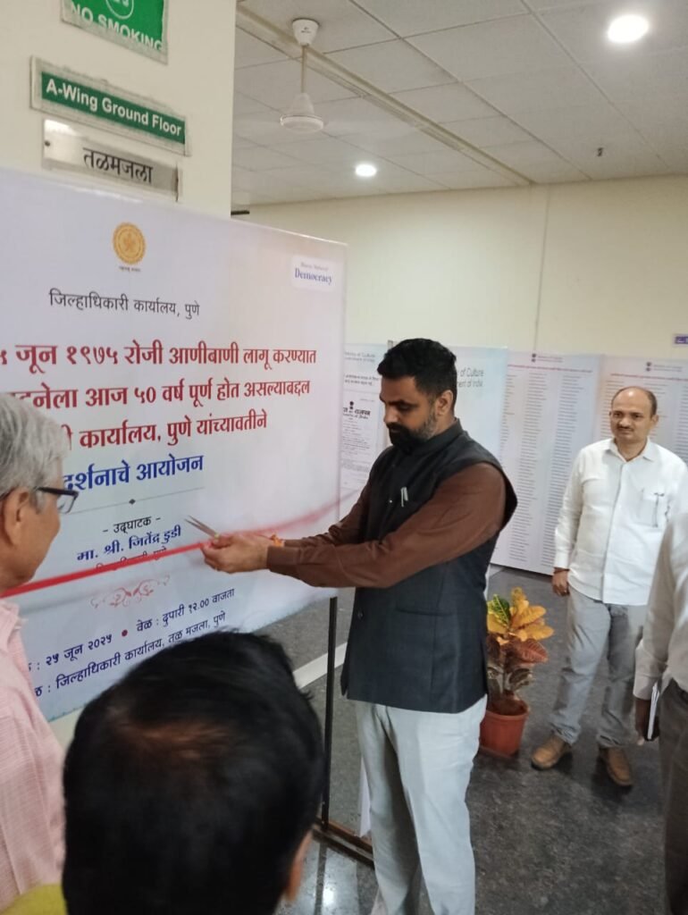 पुणे. देश में 25 जून 1975 को लागू किए गए आपातकाल को आज 50 वर्ष पूर्ण हुए। इस ऐतिहासिक प्रसंग पर जिलाधिकारी कार्यालय, पुणे की ओर से एक विशेष प्रदर्शनी का आयोजन किया गया, जिसका उद्घाटन जिलाधिकारी जितेंद्र डूडी के हाथों जिलाधिकारी कार्यालय के भूतल पर किया गया।