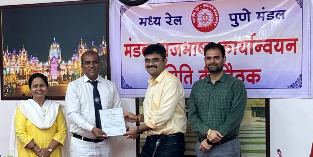 इस बैठक में मध्य रेल मुख्यालय, मुंबई से उप महाप्रबंधक (राजभाषा) डॉ. विभावरी गोरे की गरिमामयी उपस्थिति रही। डॉ. गोरे ने अपने उद्बोधन में कहा कि यदि हिंदी में कार्य करने में कठिनाई होती है तो सी-डैक द्वारा विकसित आधुनिक तकनीकों जैसे ‘कंठस्थ’, ‘लीला’ और ‘भाषिनी’ का सहयोग लिया जा सकता है, जिससे राजभाषा का प्रयोग सरल एवं सहज हो सके। बैठक के दौरान स्टेशन प्रबंधक श्री एस. जे. कुंभार को रेल मंत्रालय द्वारा हिंदी में उत्कृष्ट कार्य के लिए दिए जाने वाले पुरस्कार हेतु चयनित किया गया। उन्हें श्री पद्मसिंह जाधव के कर-कमलों से प्रमाण-पत्र प्रदान कर सम्मानित किया गया। इसी प्रकार, गृह मंत्रालय, राजभाषा विभाग की हिंदी शिक्षण योजना के अंतर्गत हिंदी टंकण परीक्षा में सफल कर्मचारियों को भी प्रमाण-पत्र प्रदान कर सम्मानित किया गया।बैठक का सफल संचालन वरिष्ठ मंडल कार्मिक अधिकारी श्री जितेंद्र सिंह द्वारा किया गया।