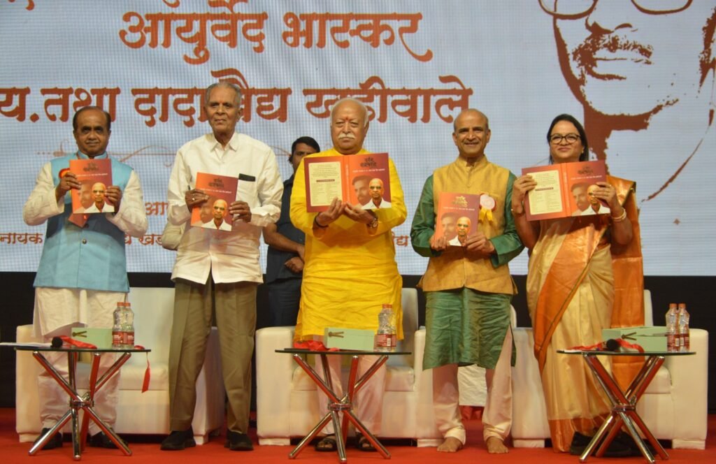 आयुर्वेद भास्कर कै. वैद्य परशुराम य. वैद्य खडीवाले तथा दादा यांच्या उत्तुंग जीवनकार्याच्या आढावा घेणा-या ‘दर्शन योगेश्वराचे – आयुर्वेद भास्कर दादा वैद्य खडीवाले’ या चरित्रग्रंथाचे प्रकाशन बालगंधर्व रंगमंदिर येथे आयोजित कार्यक्रमात झाले. यावेळी सिंबायोसिस आंतरराष्ट्रीय विद्यापीठाचे कुलपती पद्मभूषण डॉ. शां.ब.मुजुमदार, वैद्य विनायक परशुराम वैद्य खडीवाले, संगीता विनायक वैद्य खडीवाले, डॉ. राजीव ढेरे आदी उपस्थित होते. तसेच पुण्यासह संपूर्ण महाराष्ट्रातील आयुर्वेद, संशोधन आणि राष्ट्रीय स्वयंसेवक संघाशी निगडीत अनेक मान्यवर कार्यक्रमाला उपस्थित होते.
