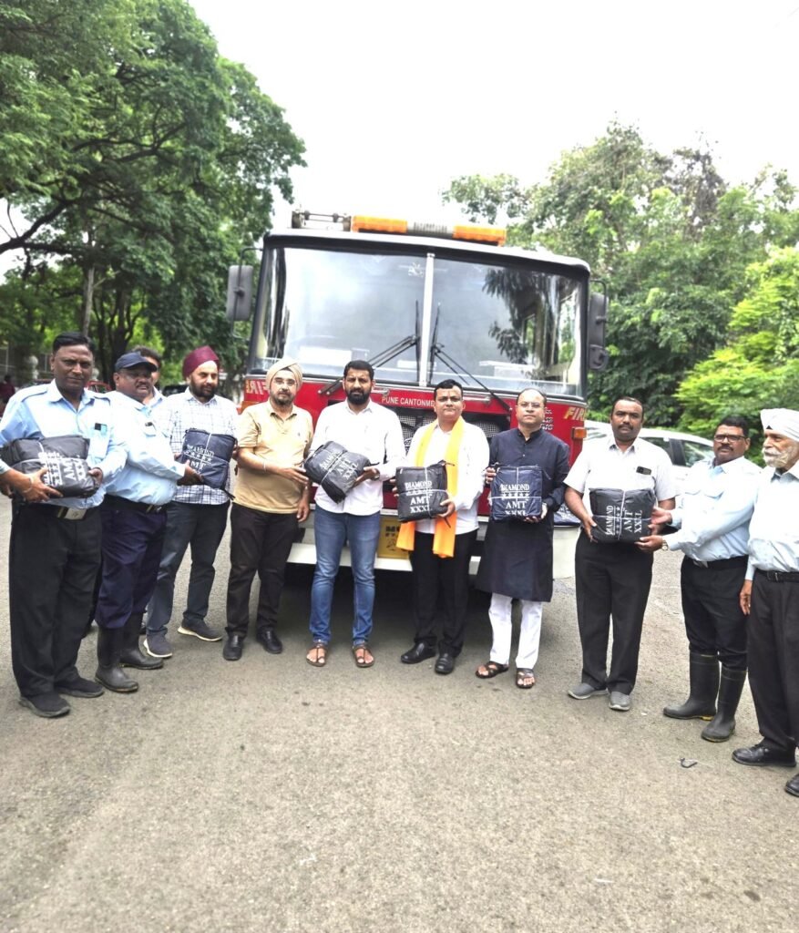पुणे . गुरुद्वारा गुरु नानक दरबार प्रबंधन समिति द्वारा पुणे कैंप कैंटोनमेंट के फायर फाइटर्स को 30 पूर्ण रेनकोट सेट वितरित किए गए। इस अवसर पर समिति के अध्यक्ष सरदार चरणजीत सिंह साहनी, फायर फाइटर्स टीम के प्रमुख श्री रणपिसे , पाध्यक्ष श्री सचिन माथुरावाला, श्री महेश पुंडे और श्री धनराज घोगरे सहित विक्की ओबेरॉय, सुरिंदर सिंह धूपर और हरजीत सिंह बेदी उपस्थित थे