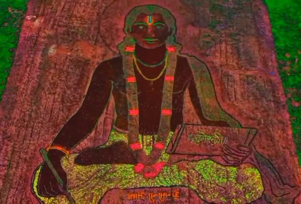 मुळशी .आषाढी वारी निमित्त मुळशी तालुक्यातील वातुंडे गावात नाचणीच्या पिकामधून तब्बल 200 फूट संत ज्ञानेश्वर महाराज साकार झाले आहेत.महादेव राघू शिंदे व नामदेव राघू शिंदे यांच्या शेतात हे चित्र उगवले आहे.