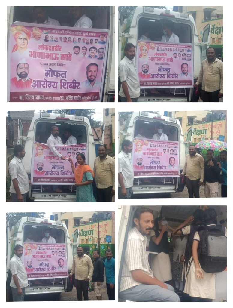 पुणे.लोकशाहीर व साहित्यिक अण्णा भाऊ साठे की जयंती के पावन अवसर पर 31जुलाई को राष्ट्रवादी काँग्रेस पार्टी की ओर से बोपोडी के 26 नंबर SRA परिसर में एक विशेष आरोग्य शिबिर (स्वास्थ्य शिविर) का आयोजन किया गया।