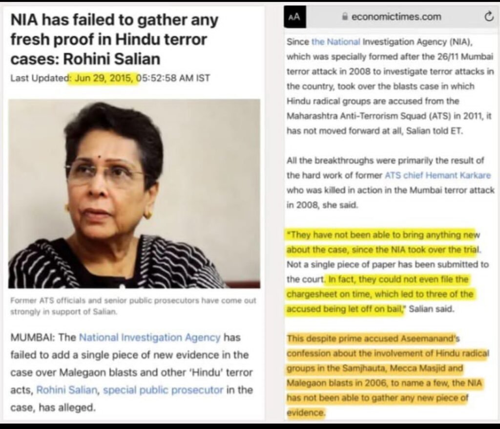 ते पुढे म्हणाले की, मालेगांव बाँम्ब स्फोटा’चा तपास तत्कालीन एटीएस प्रमुख, कर्तव्यदक्ष व प्रामाणिक अधिकारी म्हणून ख्याती असलेले श्री हेमंत करकरे यांनी केला होता. त्यावेळी संबंधित आरोपीं विरोधातील ॲाडीओ क्लिप्स, इलेक्ट्रॉनिक साहित्य, जबाब इ सक्षम पुरावे देखील समोर आल्याचा सुतोवाच तपास यंत्रणे कडुन झाला होता.