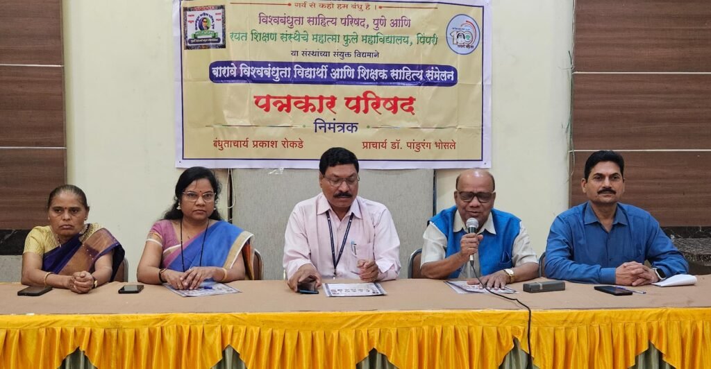 पिंपरी : विश्वबंधुता साहित्य परिषद आणि रयत शिक्षण संस्थेचे पिंपरी येथील महात्मा फुले महाविद्यालय यांच्या संयुक्त विद्यमाने बारावे विश्वबंधुता साहित्य संमेलन आयोजित केले आहे. येत्या शुक्रवारी (ता. ८ ऑगस्ट) सकाळी १० वाजता महाविद्यालयाच्या सभागृहात होणाऱ्या संमेलनाच्या निमित्ताने दिला जाणारा ‘डॉ. बाबासाहेब आंबेडकर प्रज्ञावंत पुरस्कार’ मुस्लिम सत्यशोधक मंडळाचे अध्यक्ष, ज्येष्ठ साहित्यिक डॉ. शमशुद्दीन तांबोळी आणि ज्येष्ठ आयुर्वेदतज्ज्ञ डॉ. जयकुमार ताम्हाणे यांना जाहीर झाला आहे. तिरंगा महावस्त्र, सन्मानचिन्ह, मानपत्र आणि संविधानाच्या उद्देशिकेची प्रतिकृती असे या पुरस्काराचे स्वरूप आहे, अशी माहिती विश्वबंधुता साहित्य परिषदेचे संस्थापक अध्यक्ष बंधुताचार्य प्रकाश रोकडे व संमेलनाचे स्वागताध्यक्ष प्राचार्य डॉ. पांडुरंग भोसले यांनी पत्रकार परिषदेत दिली. प्रसंगी बंधुता परिषदेचे सचिव प्रा. शंकर आथरे, कवयित्री संगीता झिंजुरके, बंधुता प्रकाशनच्या संचालिका मंदाकिनी रोकडे उपस्थित होते.