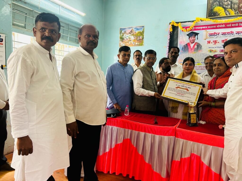 डॉ. सर्वपल्ली राधाकृष्णन प्रशाला बोपोडी माजी विद्यार्थी संघटनेच्या वतीने ब्रह्मकुमारी डॉ. त्रिवेणी दीदी बहिरट यांना अध्यात्मिक क्षेत्रात उल्लेखनीय यश संपादन केल्याबद्दल कॅनडा युनिव्हर्सिटीच्या वतीने “आध्यात्मिक विज्ञान विषयात डॉक्टरेट” प्रदान करण्यात आली. त्याबद्दल त्यांचा नागरी सत्कार ठेवण्यात आला. त्यात बोपोडीतील सर्व प्रतिष्ठित मान्यवरांच्या वतीने दीदींना “बोपोडी भूषण २०२५” हा पुरस्कार देऊन गौरविण्यात आले. तसेच बोपोडी मराठा समाजाच्या वतीने देखील सत्कार करण्यात आला.