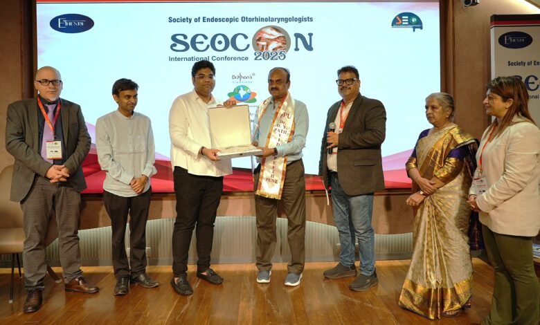 पुणे, १८ सप्टेंबर २०२५ : सोसायटी ऑफ एंडोस्कोपिक ओटो-लॅरिंजॉलॉजिस्ट्स (SEO) ने SEOCON २५ या आंतरराष्ट्रीय परिषदेची घोषणा केली, ज्याने एंडोस्कोपिक कान, नाक व घसा (ईएनटी) शस्त्रक्रियेमधील मापदंड नव्याने निश्चित केले. चार दिवसीय शैक्षणिक व सांस्कृतिक सोहळ्याचे आयोजन डॉ. डी. वाय. पाटील मेडिकल कॉलेज, हॉस्पिटल व रिसर्च सेंटर, पिंपरी, पुणे येथे करण्यात आले होते. या परिषदेने भारत व परदेशातील ३०० हून अधिक ईएनटी सर्जन्स, नाविन्यपूर्ण तज्ञ आणि संशोधकांना एकत्र आणले.