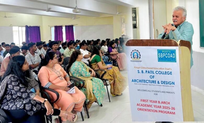 पिंपरी चिचवड एज्युकेशन ट्रस्टच्या (पीसीईटी) एस.बी. पाटील कॉलेज ऑफ आर्किटेक्चर अँड डिझाइन (एसबीपीसीओएडी) येथे आर्किटेक्चरच्या २०२५ या शैक्षणिक वर्षातील प्रथम वर्षासाठी प्रवेश घेतलेल्या विद्यार्थ्यांसाठी स्वागत आणि तज्ज्ञांचे मार्गदर्शन हा कार्यक्रम नुकताच आयोजित करण्यात आला होता. यावेळी एसबीपीसीओएडीच्या प्राचार्य डॉ. स्मिता सूर्यवंशी उपस्थित होत्या.