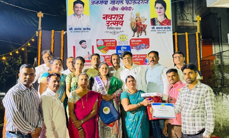 नवरात्रीच्या उत्सवा निमित्ताने जनसेवा सोशल फाउंडेशन औंध -बोपोडी यांच्या वतीने होम मिनिस्टर (खेळ पैठणीचा) या कार्यक्रमाचे आयोजन
