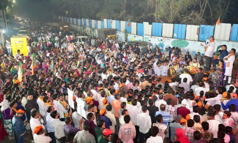 पुणे.भारतीय जनता पक्षाच्या प्रभाग क्रमांक ११ मधील पदयात्रेला अभूतपूर्व प्रतिसाद मिळाला. ताशांच्या गजरात, ठिकठिकाणी फटाक्यांची आतिषबाजी, भाजपच्या विजयाच्या घोषणांनी संपूर्ण परिसर दणाणून गेला होता. राज्याचे उच्च व तंत्र शिक्षण मंत्री चंद्रकांतदादा पाटील यांनीही या पदयात्रेत सहभागी होत, गाडीच्या टपावर उभारून नागरिकांना संबोधित केले.
