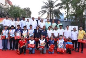 रोलबॉल स्टेडियम आच्छादित करण्याच्या कामाचे भूमिपूजन व खेळाडूंचा सत्कार संपन्न.