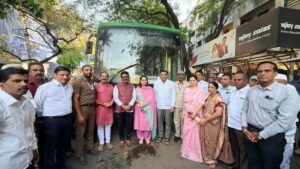 पुणे. कई वर्षों से बंद पड़ी क्र. 105 मेडी पॉइंट (डी.पी. रोड), औंध से डेक्कन जिमखाना तक की बस सेवा आखिरकार आज फिर से शुरू कर दी गई। इस बहुप्रतीक्षित सेवा के पुनः शुरू होने से स्थानीय नागरिकों में खुशी का माहौल देखा गया। इस बस सेवा का उद्घाटन PMPML के अध्यक्ष अजय खेडेकर के हाथों नारियल फोड़कर और हरी झंडी दिखाकर किया गया। इस अवसर पर उपमहापौर परशुराम वाडेकर, नगरसेवक सन्नी निम्हण, नगरसेविका भक्तीताई गायकवाड और नगरसेविका सपना छाजेड सहित कई जनप्रतिनिधि उपस्थित रहे।