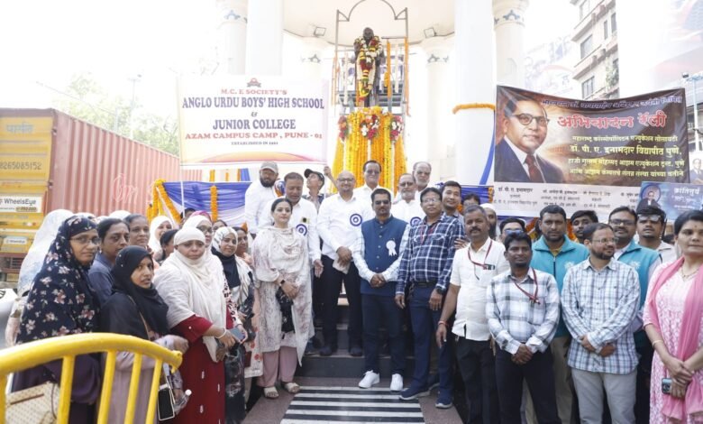 पुणे : महाराष्ट्र कॉस्मोपॉलिटन एजुकेशन सोसायटी’ (आझम कैंपस) की ओर से भारत रत्न डॉ. बाबासाहेब आंबेडकर जयंती के अवसर पर अभिवादन रैली का आयोजन किया गया। दिनांक 14 अप्रैल 2026 को सुबह साढ़े आठ बजे आझम कैंपस से इस रैली का शुभारंभ महाराष्ट्र कॉस्मोपॉलिटन एजुकेशन सोसायटी की अध्यक्ष आबेदा इनामदार के हाथों किया गया। महात्मा गांधी रोड स्थित डॉ. बाबासाहेब आंबेडकर की प्रतिमा पर जाकर उन्हें श्रद्धांजलि अर्पित की गई।